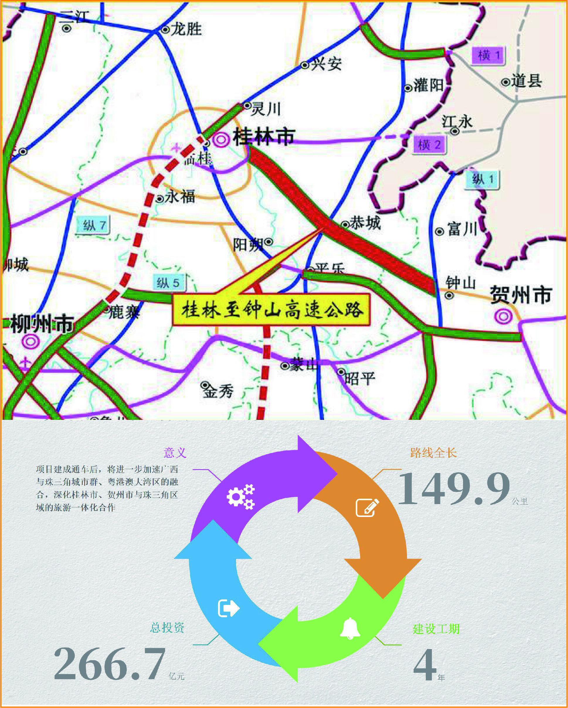 该高速公路建成通车后,将进一步加速广西与珠三角城市群、粤港澳大湾区的深度融合,深化桂林市、贺州市与珠三角区域的旅游一体化合作发展。