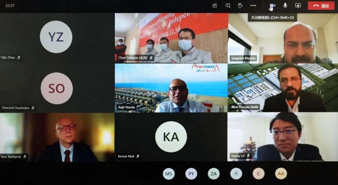 中国能建葛洲坝国际公司党委书记、董事长吕泽翔和ACWA Power首席投资官Rajit代表双方在合同上签字。签约仪式在北京、迪拜、塔什干、布鲁塞尔同步进行。签约仪式前,双方团队就加强沟通、深化合作进行了友好会谈,并期待以此次项目签约为契机,推动更多项目落实落地。