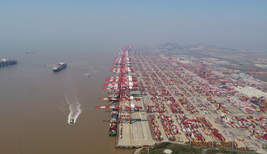 这是上海洋山港集装箱码头(2020年3月18日摄)