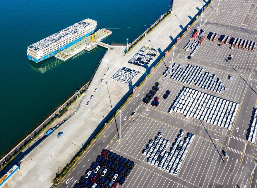 这是三峡库区湖北省宜昌市秭归县秭归港车辆分拨转运现场(2020年11月13日摄)