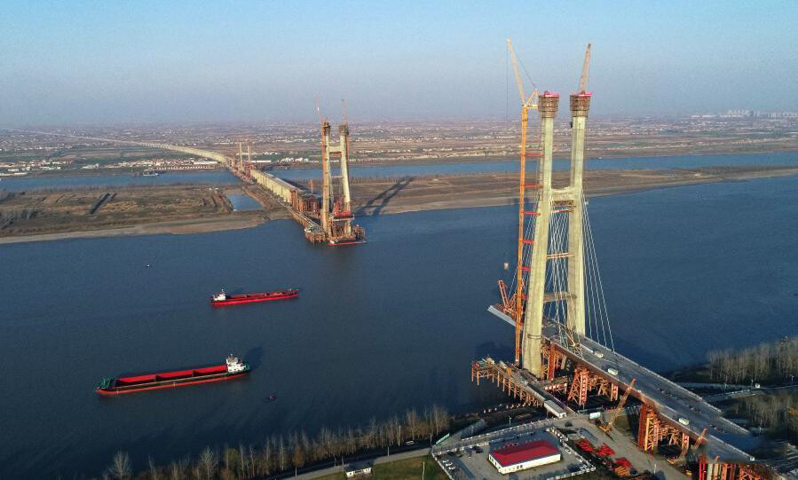 这是在建的安九铁路鳊鱼洲长江大桥(2020年12月30日摄)。鳊鱼洲长江大桥为四线铁路大桥,北侧位于湖北黄梅县,南侧位于江西九江市。