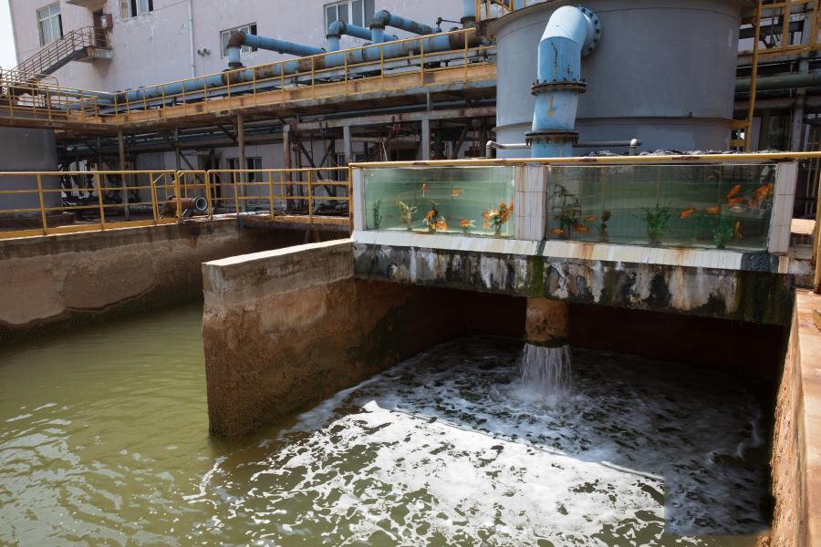 徽铜陵有色金冠铜业分公司排水口展示用经过处理后的达标废水养鱼(2018年8月8日摄)