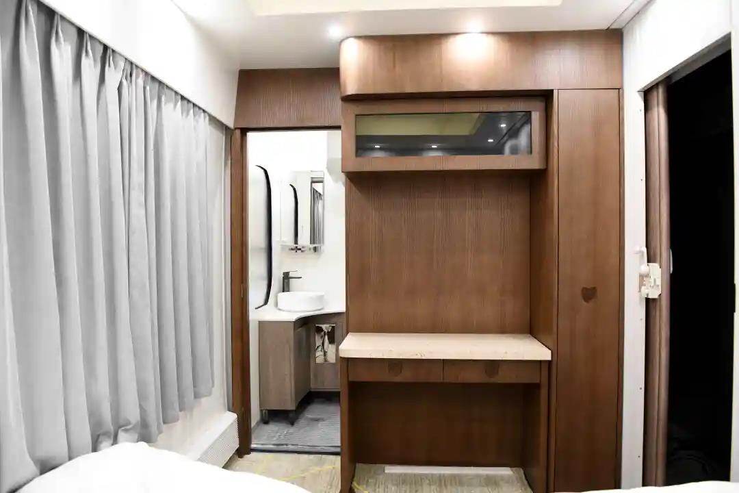 据了解,“熊猫专列”以10节380V25G型客车为基础进行升级改造。升级改造后的“熊猫专列”包括特级软卧1辆、高级软卧2辆、高级硬卧5辆、餐车1辆、多功能娱乐车1辆、全列定员252席。重点来了!样板间长什么样?继续往下看吧。