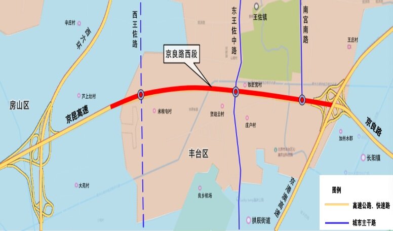 近日,连通京昆高速与京港澳高速的京良路西段工程开工建设,计划2022年建成。
