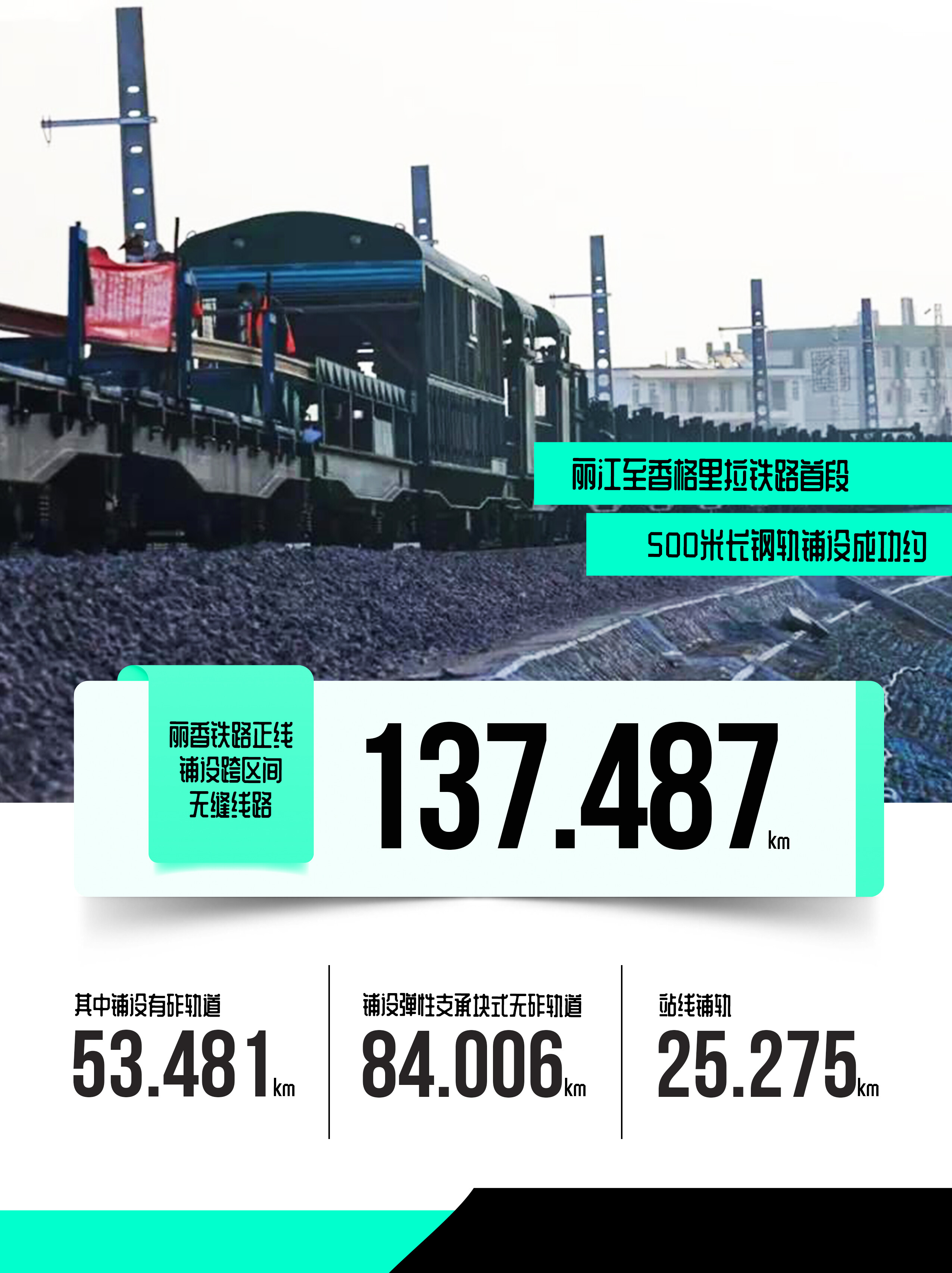 2021年1月16日,丽江至香格里拉铁路首段500米长钢轨铺设成功,这标志着丽香铁路全线无缝长钢轨铺设拉开序幕。
