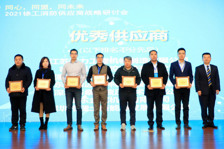 1月18日,徐工消防2021年“同心 同盟 同未来”供应商战略研讨会隆重召开,28家供应商代表齐聚一堂,并颁发了年度优秀服务供应商奖、优秀质量供应商奖、协同发展供应商奖、优秀供应商奖及战略供应商奖。公司党委书记、总经理李前进,副总经理徐小东,总经理助理张义等出席会议。