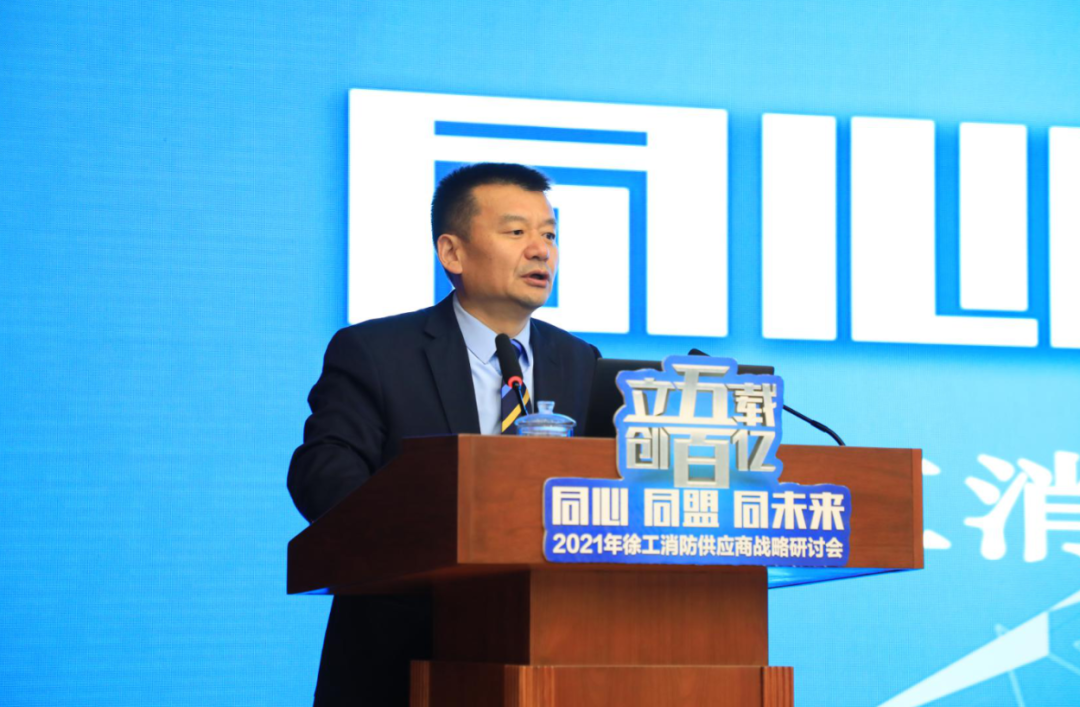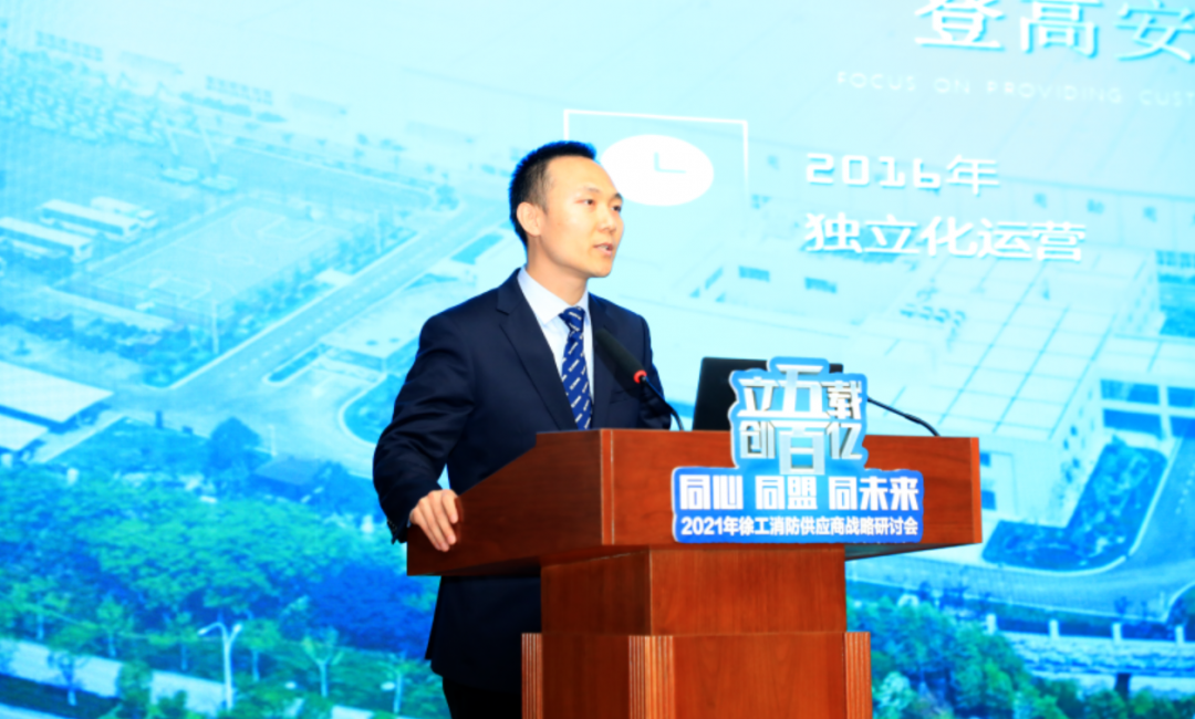 徐工消防副总经理徐小东主持本次会议,并代表公司领导班子和全体员工,对长期关心、支持徐工消防的合作伙伴们致以最诚挚的感谢。
