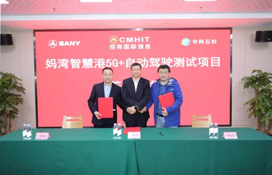 2020年1月26日,招商局国际信息与三一海洋重工在深圳举行妈湾智慧港5G+自动驾驶项目签约仪式,签署18台无人集卡合作。招商局国际信息总经理汪沛,三一集团副总裁、三一海工董事长伏卫忠,中科云杉CEO潘元承等领导出席签约。