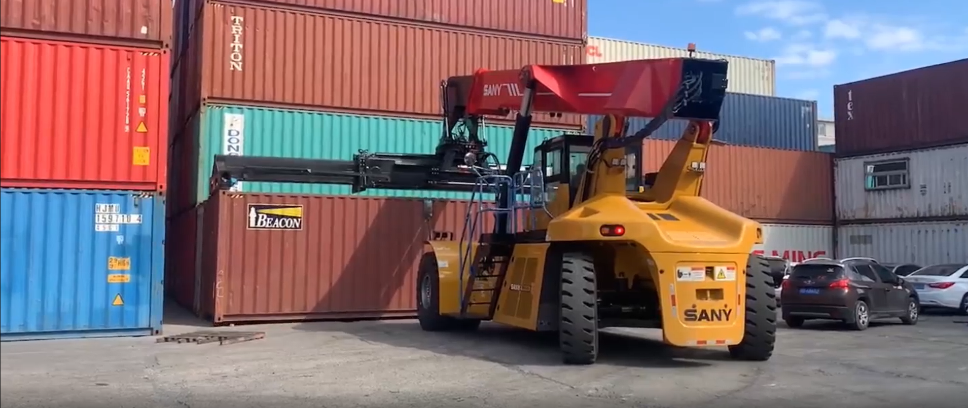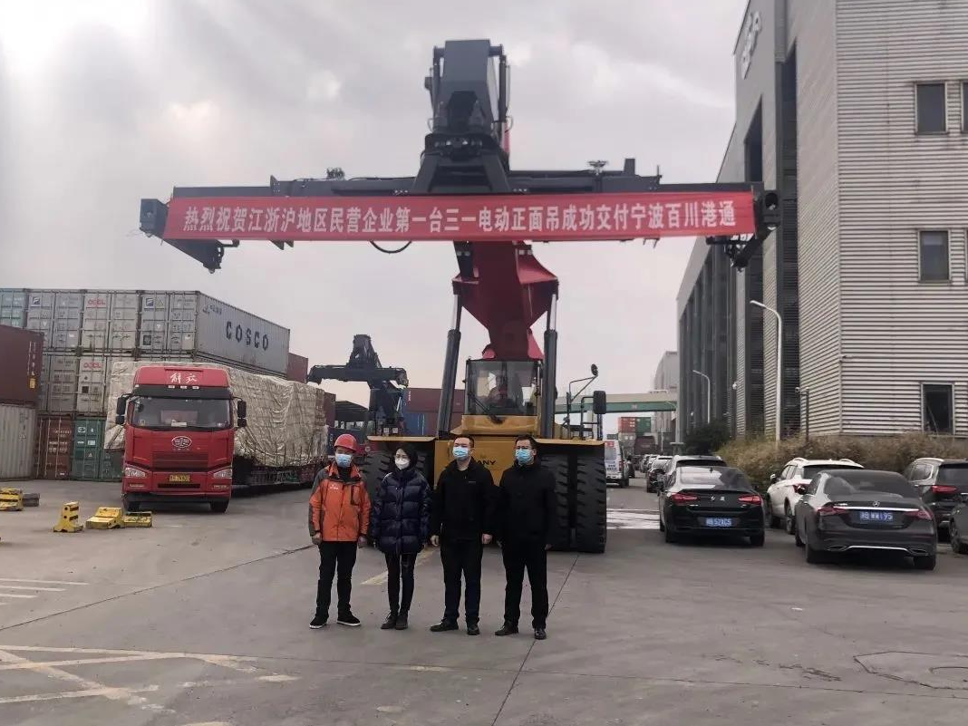 近日,一台三一电动正面吊交付宁波百川港通,这是江浙沪地区民企购买的首台新能源正面吊,也是百川港通第六台三一正面吊。