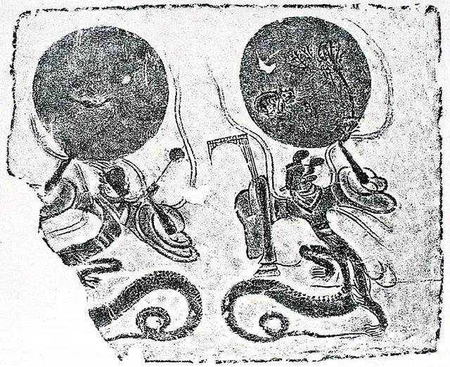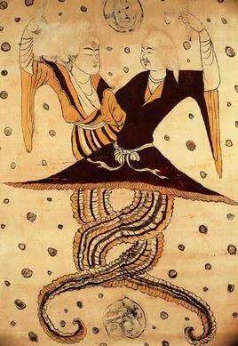 新疆出土的唐代人首蛇身之伏羲女娲合体太阳神像
