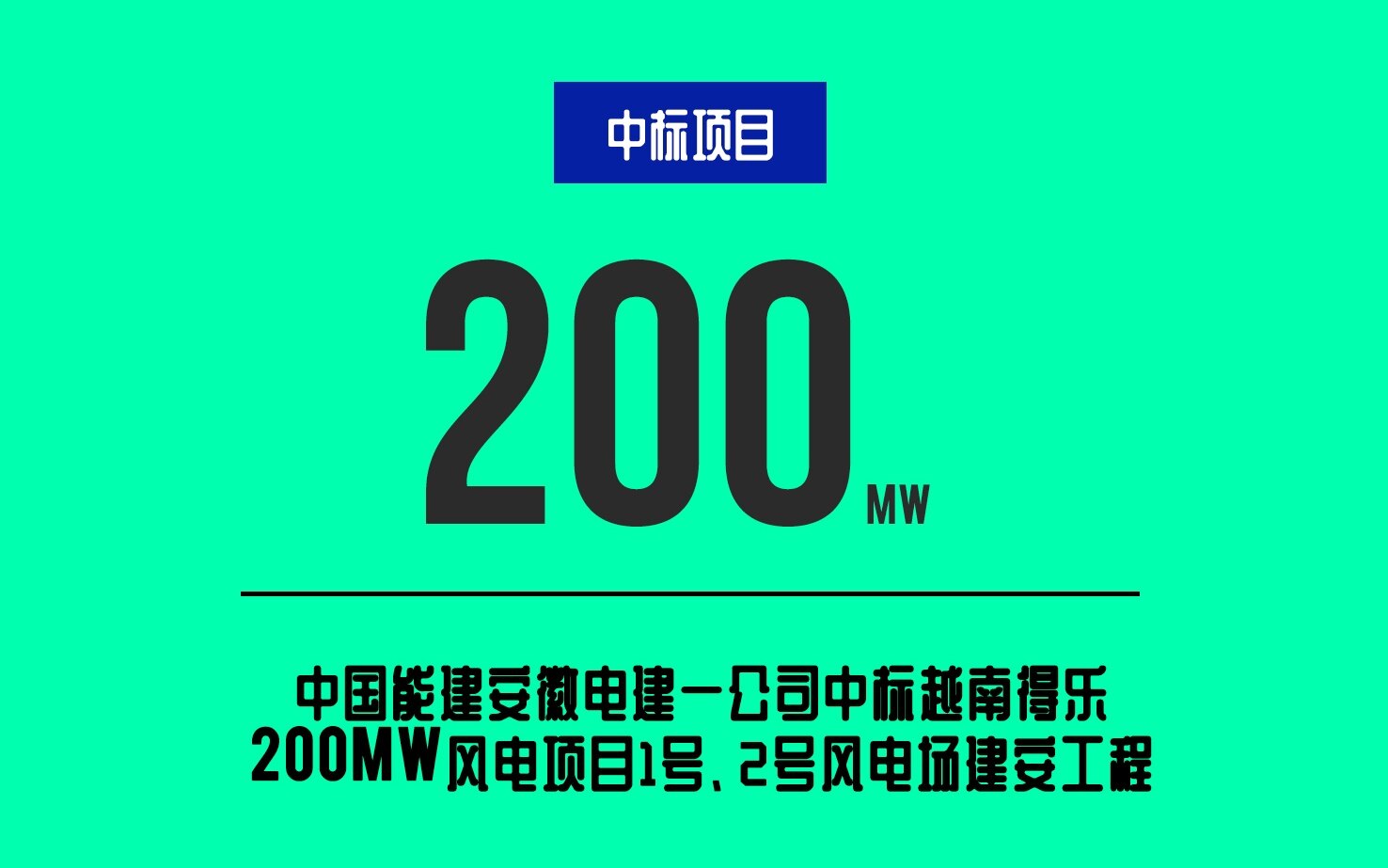 近日,中国能建安徽电建一公司中标越南得乐200MW风电项目1号、2号风电场建安工程。