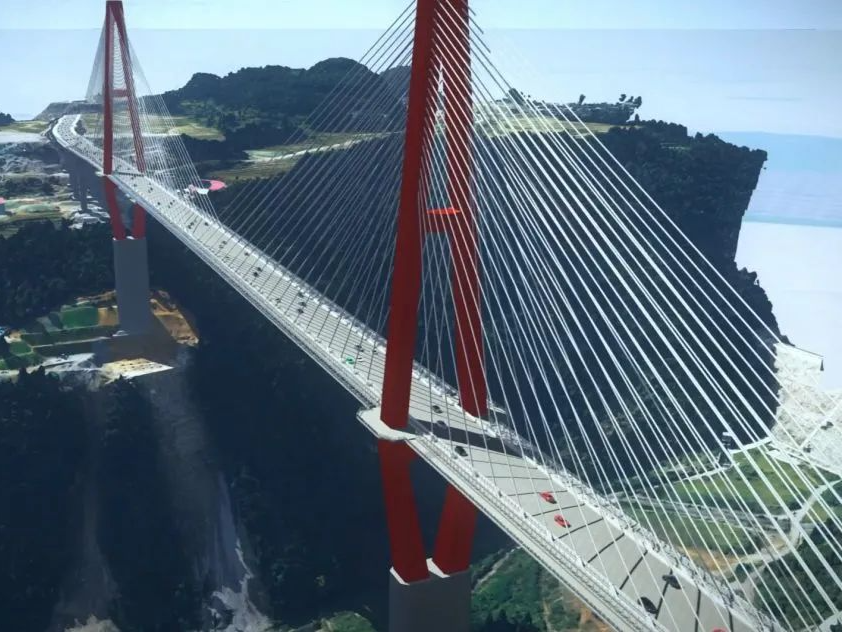 朵花特大桥是龙里县黔中龙溪内陆开放型经济发展先导区连接龙里草原片区的控制性工程,全长1260米,主桥为双塔双索面钢混叠合梁斜拉桥,主塔采用薄壁空心钻石形索塔,总高度达265米,共分为47个节段,采用液压爬模施工。主跨及塔柱设有观光旅游玻璃步道、观光电梯和空中观景平台等设施。