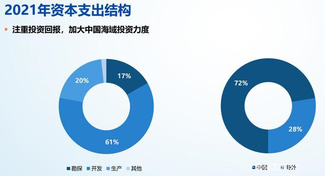 Among them, exploration, development and production capitalization expenditures are expected to account for approximately 17%, 61% and 20% of the total capital expenditure budget respectively. In the allocation of capital expenditure in 2021, the proportion of capital expenditure used for oil and gas field development was slightly higher than that of previous years, while the proportion used for exploration was slightly lower than that of previous years. In this regard, Xu Keqiang explained that the actual exploration workload of the company has not decreased, while the increase in development expenditure is due to the development of multiple key projects this year.