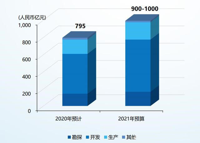 In 2021, CNOOC’s total capital expenditure budget is RMB 90-100 billion. Compared with the capital expenditure of about 79.5 billion yuan in 2020, the increase in 2021 will be 10.5-20 billion yuan, which exceeds the growth rate of the same period in previous years and also exceeds market expectations for CNOOC. CNOOC CFO Xie Weizhi said that the 2021 capital expenditure budgeted oil price is based on Brent 50 US dollars per barrel.