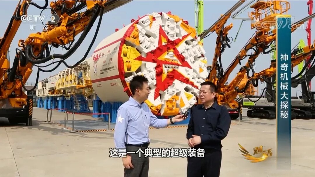 节目伊始,刘飞香向主持人陈伟鸿介绍了一台位于舞台后方的“庞然大物”。刘飞香说,我身后这台设备,名字叫做盾构机,是地下工程装备之王,主要用于隧道施工,盾构机现在最大做到直径16米,相当于一个居民楼五、六层楼高,它的长度可达200米,相当于一辆高铁列车,它的重量达到4200多吨,这是一个典型的超级装备。
