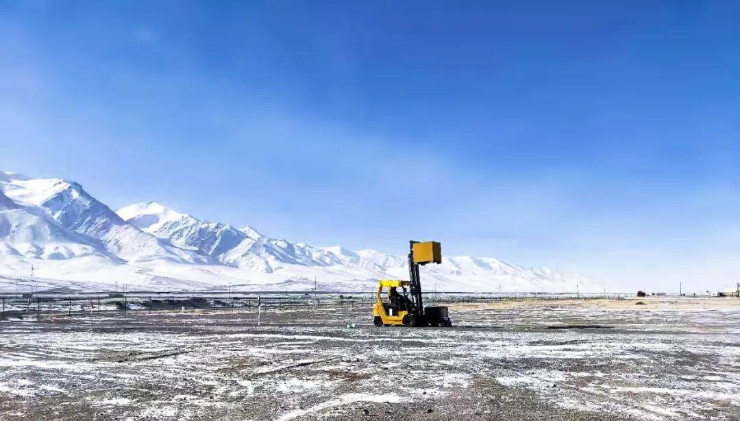 2021年1月底的青海省格尔木市进入了一年中最寒冷的时候,“千里冰封,万里雪飘”,人迹罕至的玉珠峰下,一抹亮眼的“徐工金”叉车悄然出现在白雪皑皑的戈壁滩上,低调的进行着一项特殊的任务。