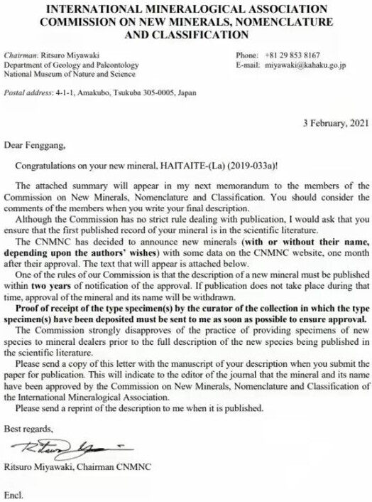 近日,由核工业北京地质研究院牵头,核工业二八〇研究所共同研究发现并命名的自然界新矿物Haitaite-(La)(海塔铀矿)获得国际矿物协会新矿物、矿物命名及分类委员会(IMA CNMNC)批准。