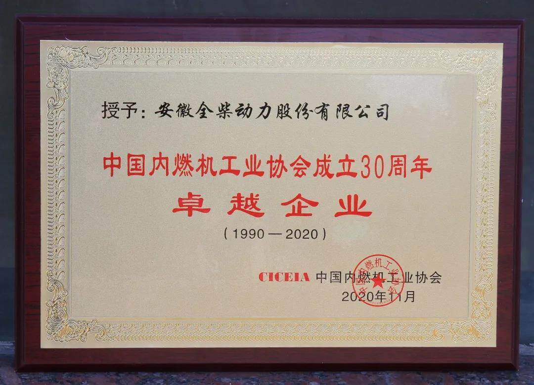 全柴获得的14个荣誉中,“中国内燃机工业协会成立30周年卓越企业”和“中国内燃机行业排头兵企业”这两项荣誉可谓含金量十足。