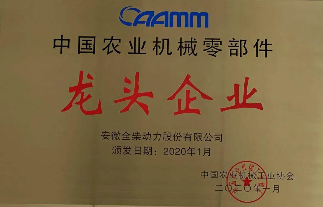 在农业装备领域,全柴荣膺中国农业机械零部件龙头企业、中国农机工业协会零部件分会副会长单位、第六届理事会副会长单位、以及中国农业机械工业企业管理协会第八届常务理事单位等四项荣誉。