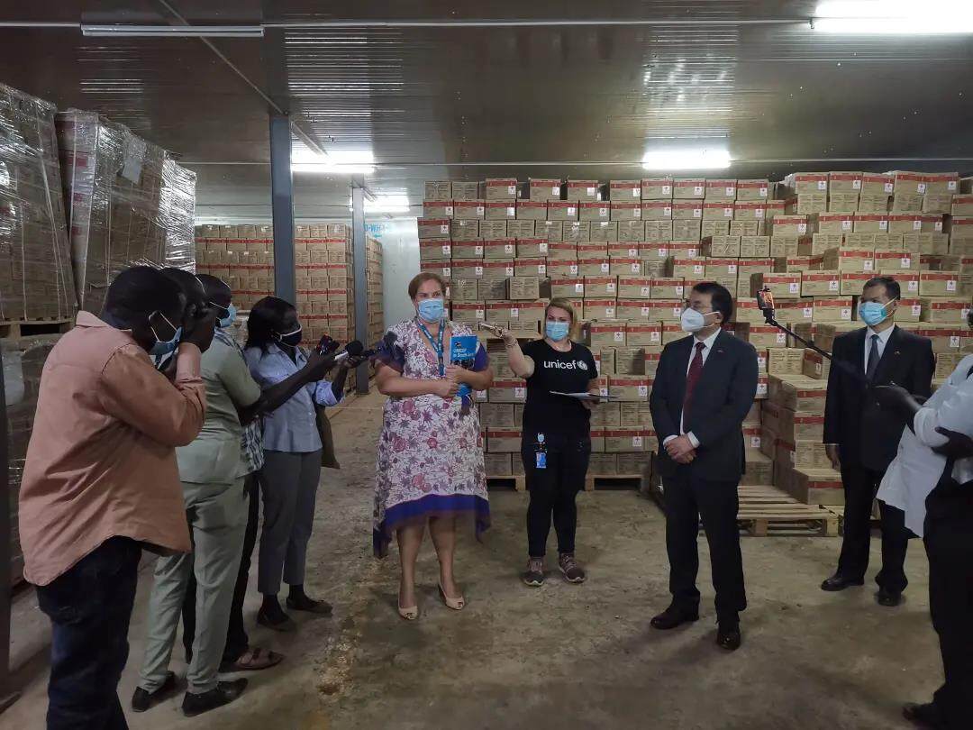 The handover ceremony of China's donation of therapeutic nutritious food to children in South Sudan was held at the UNICEF warehouse in Juba. This time, the Chinese government will provide support to the United Nations Children's Fund (UNICEF) to help improve the nutritional status of children affected by the New Crest and Desert Locust Plagues in South Sudan. Ambassador Hua Ning of China to South Sudan and Interim Representative of UNICEF to South Sudan Andrea Sulei attended the ceremony and delivered a speech. Commercial Counsellor Cai Senming of the Chinese Embassy and other officials attended the ceremony.