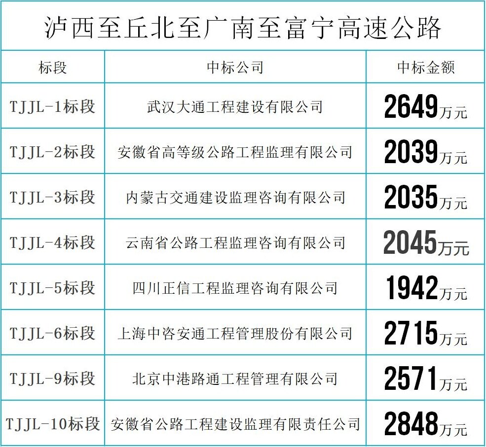 2021年2月19日,泸西至丘北至广南至富宁高速公路监理中标结果公示,文山州承建段分为8个标段修建,总投资约18.84亿元。