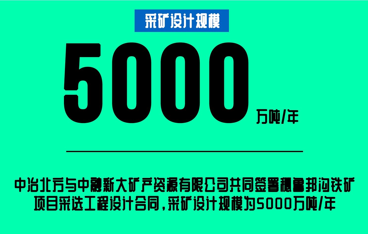 2021年2月19日,中冶北方与中融新大矿产资源有限公司共同签署秘鲁邦沟铁矿项目采选工程设计合同。