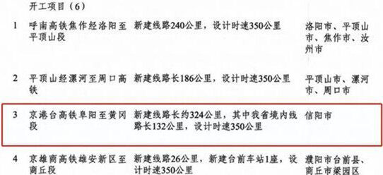 近日,河南省发改委发布了关于印发2021年河南省重点建设项目名单的通知。2021年河南省重点建设项目名单共列项目1371个,总投资4.4万亿元。其中2021年计划完成投资1.1万亿元,其项目数量、总投资额、年度计划投资额均创历史新高。在142项重大基础设施项目中,京港台高铁阜阳至黄冈段被列为2021年开工项目。