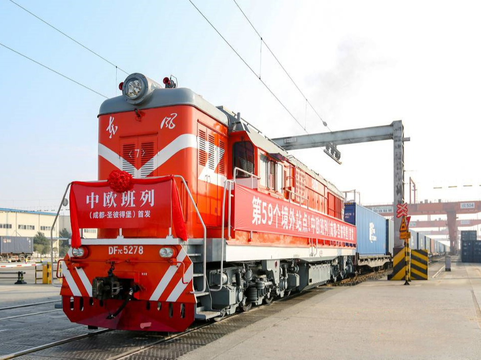 2021年2月21日,随着鸣笛声响起,满载着一带一路建设配套物资的中欧班列从成都青白江区国际铁路港缓缓驶出,预计13天后抵达俄罗斯圣彼得堡。这是成都至俄罗斯圣彼得堡开行的首趟中欧班列,也是中欧班列(成渝)号牛年新春成都新增的第59个境外站点。