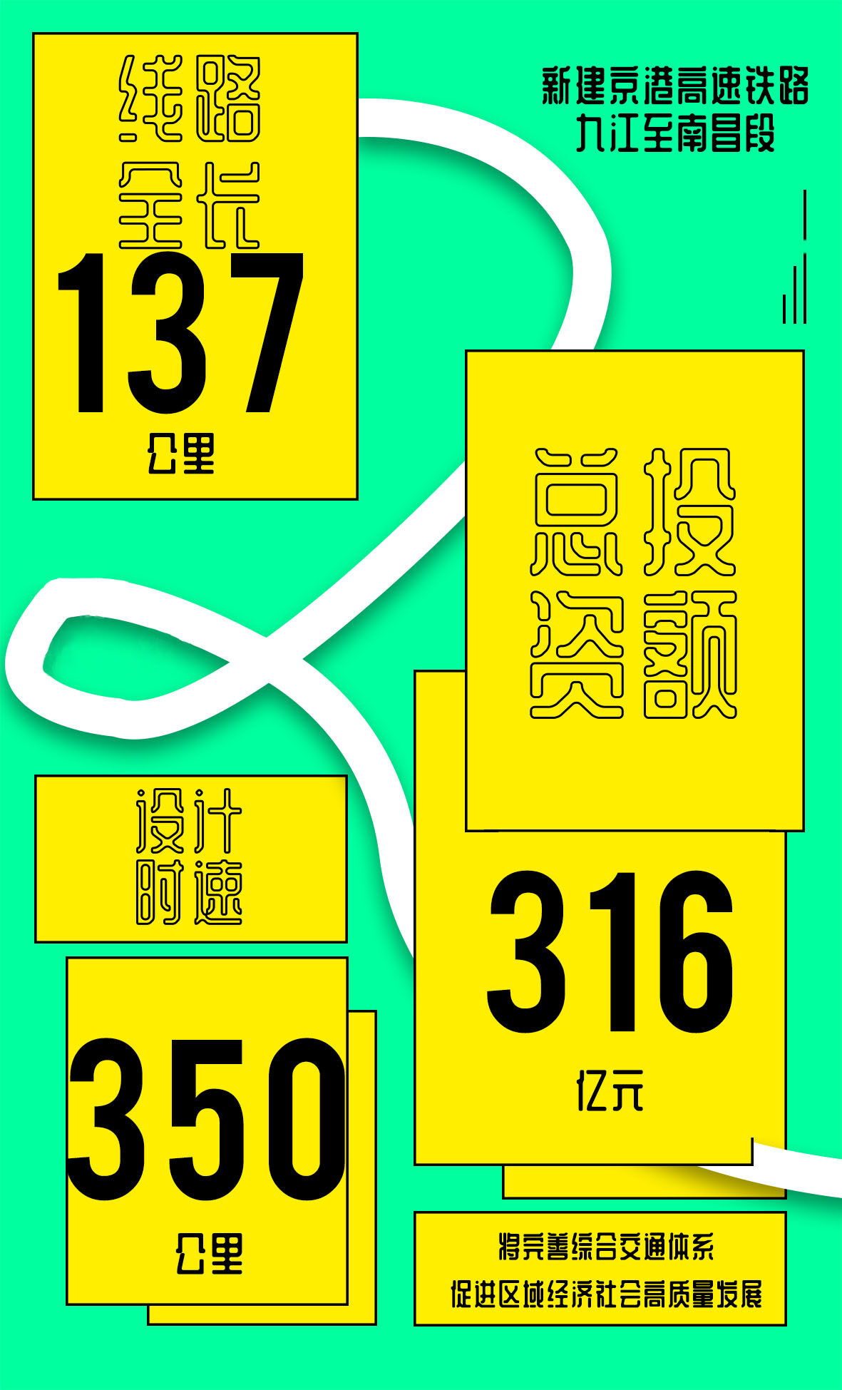 全线设庐山、庐山南、共青城东、昌北机场、南昌东5座车站,其中庐山站、南昌东站为接轨站。设计时速为350公里/小时,工程估算总投资315.9亿元。