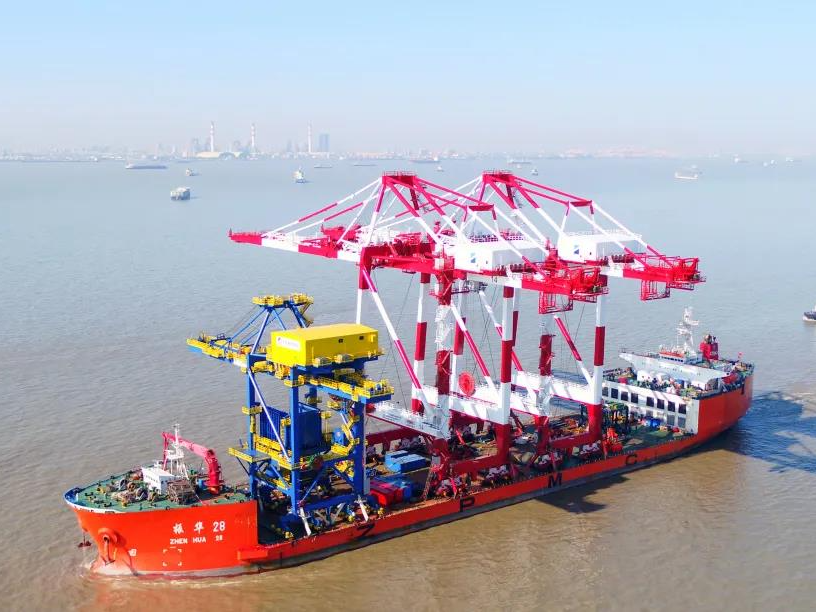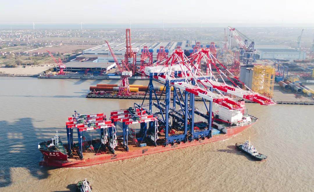 2021年2月21日清晨,长兴基地码头一片热火朝天,3艘振华运输船装载着港机设备启程前往西班牙巴塞罗那、美国长滩和中国宁波。“振华28”轮装载着振华重工为巴塞罗那BEST港提供的2台鹅颈式岸桥、2台跨运车,同船发运的还有1台巴西TERMAG卸船机。