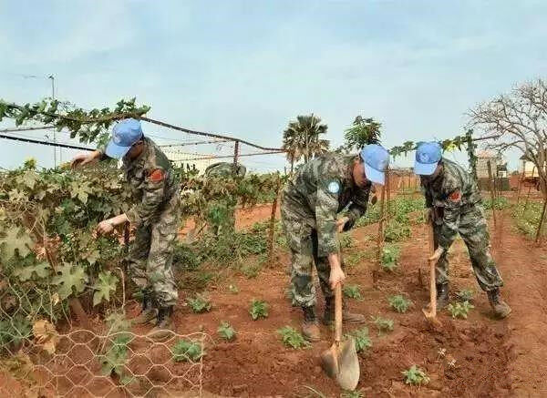 除了普通百姓,中国军人也是充分展现了种族技能。由于联合国的食品都是采购后空运过来的,维和部队的战士们很难吃到新鲜蔬菜。