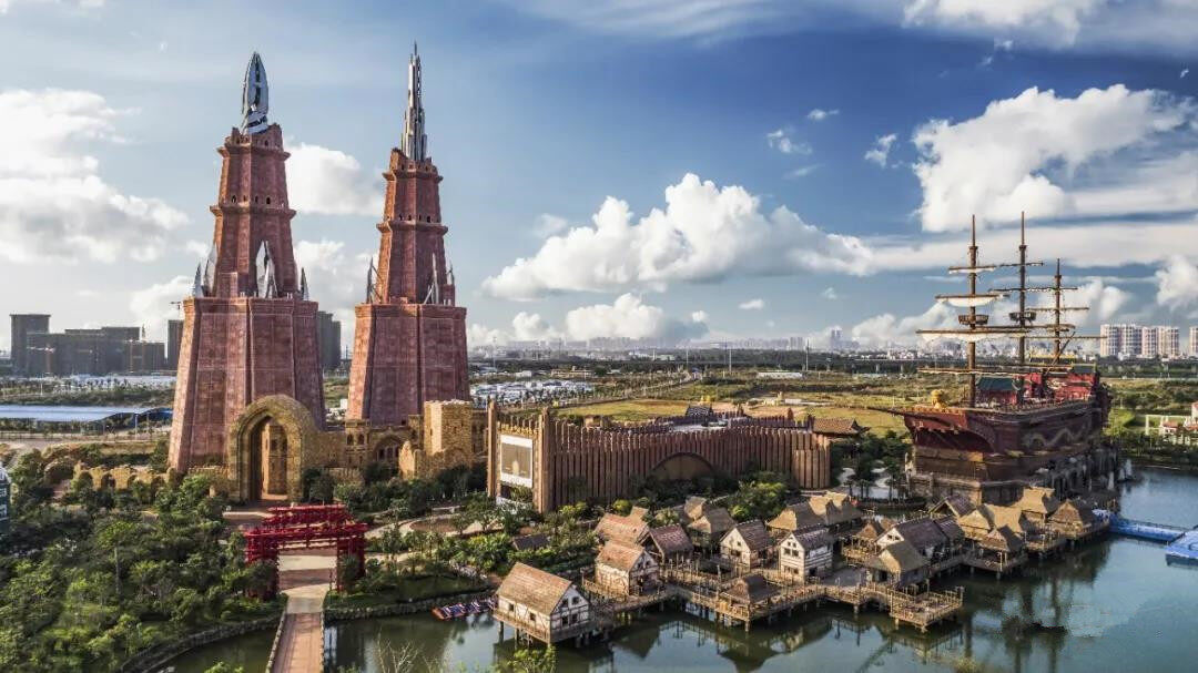 中国区又名丝路探险,灵感汲取自历史题材郑和下西洋和丝绸之路,关注东西方文化的碰撞融合,用郑和宝船,沙漠绿洲,楼兰古塔等一幕幕震撼人心的场景,呼应着国家一带一路倡议.园区年均接待游客达数百万人次,不仅带动了当地的就业,还极大地拉动了海口市当地旅游业的蓬勃发展。