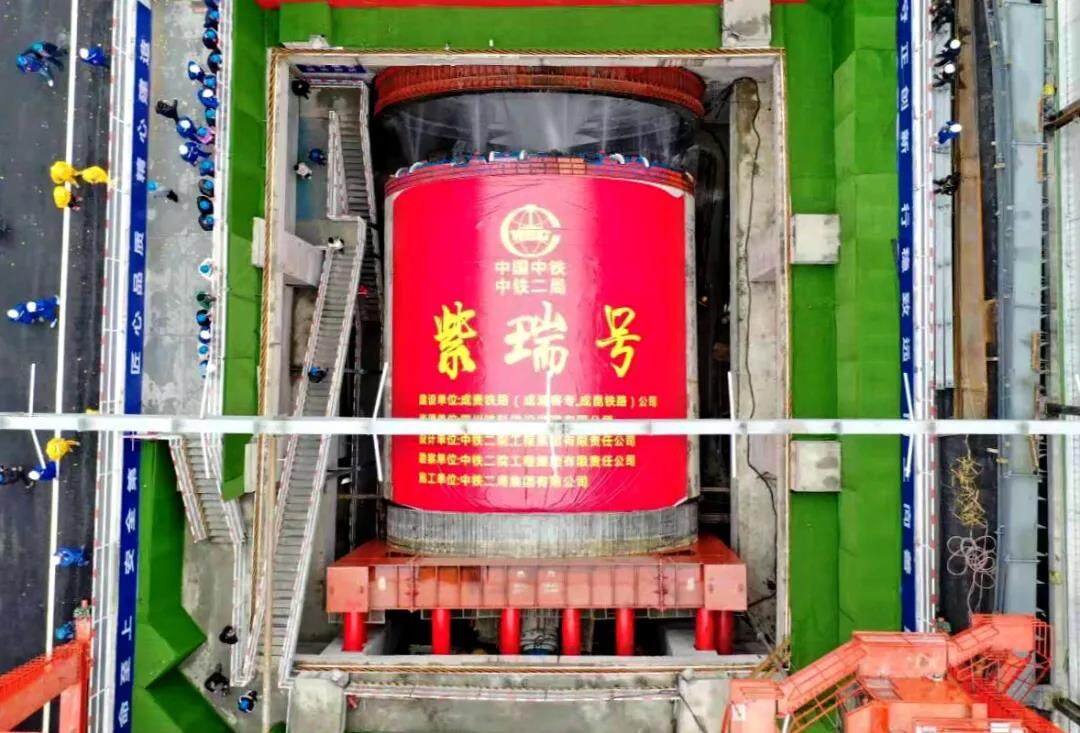2021年2月26日,由中国中铁工业、中国中铁二局联合研制的国内最大直径土压-泥水双模盾构机—— “紫瑞号”在中国中铁二院设计、中国中铁二局承建的成都铁路枢纽紫瑞隧道顺利完成始发,标志着成都铁路枢纽环线建设取得重大进展。