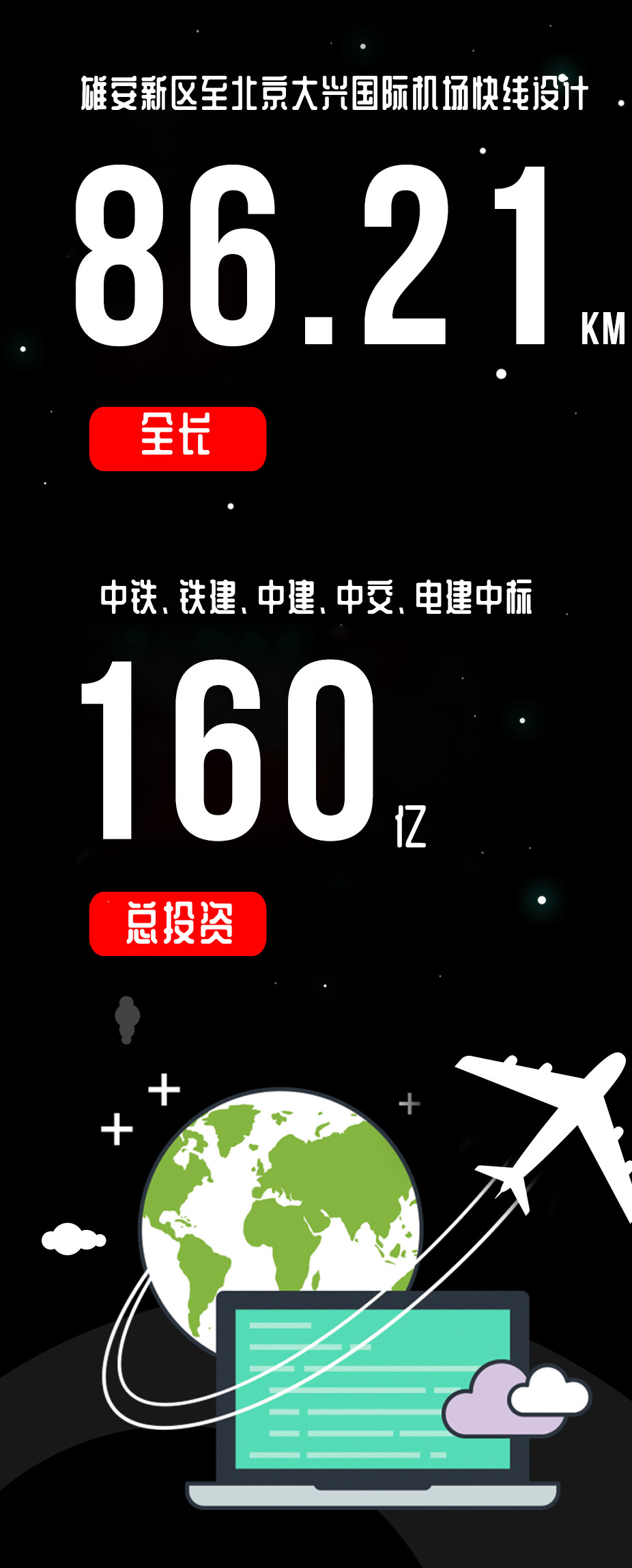 2021年3月2日,保定市公共资源交易中心发布雄安新区至北京大兴国际机场快线设计施工总承包一至五标段中标候选人公示。中铁、铁建、中建、中交、电建中标雄安新区160亿大项目。