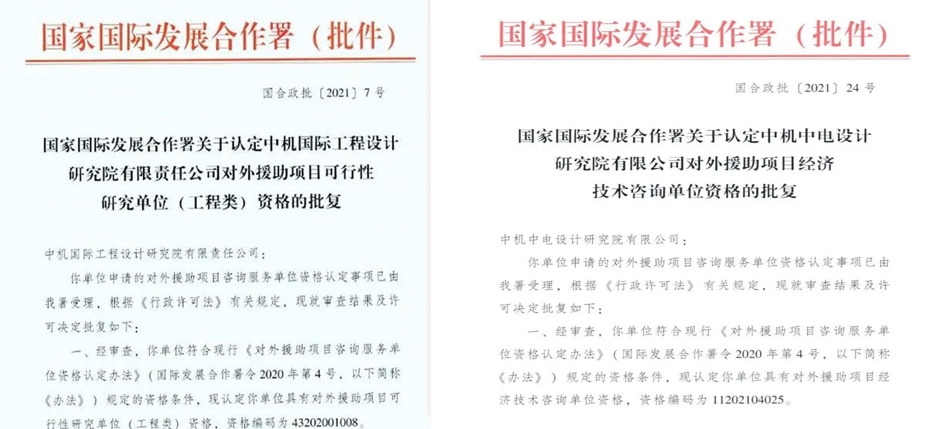 近日,经国家国际发展合作署批复,中设集团所属中国电工旗下中机中电设计研究院以及所属中机国际两家企业,成功取得对外援助项目经济技术咨询单位资格和对外援助项目可行性研究单位(工程类)资格。