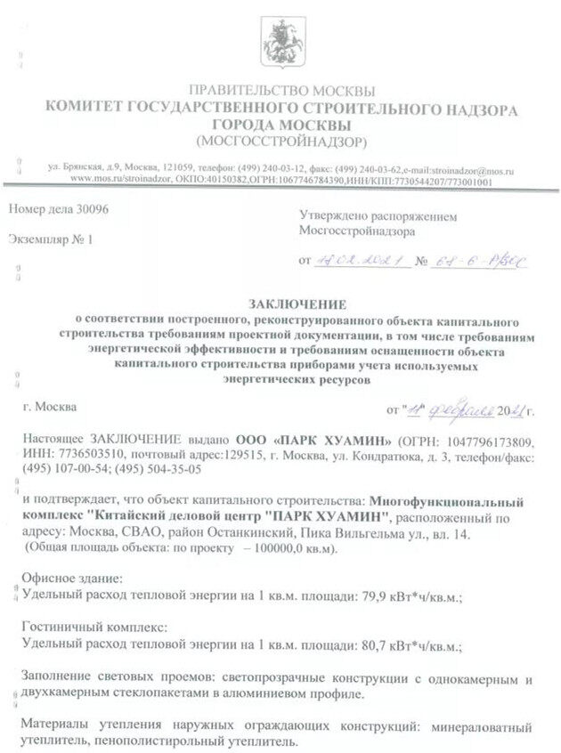 这是中资建筑企业第一次在俄独立获得由俄罗斯国家监理部门颁发的竣工验收报告。