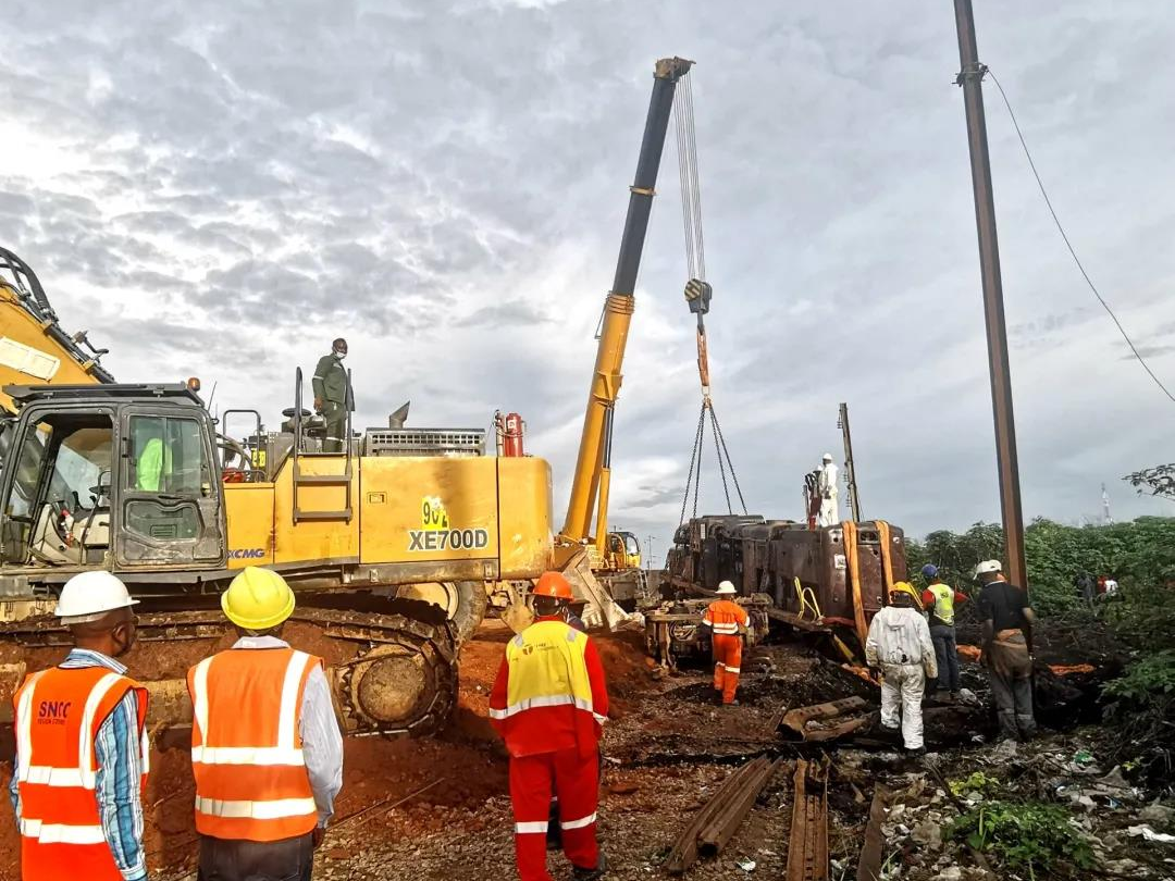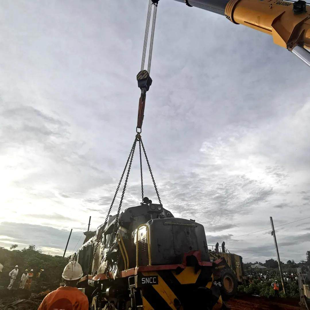 近日,在非洲刚果金Tenke附近一火车站内,因操作失误,一辆载货列车发生列车脱轨侧翻事故。情况危急,当地交通部门立即向附近某工地的徐工项目组请求援助。险情就是命令,徐工当地项目团队负责人唐光立即组织人员和设备,赶到事故现场抢险救援。