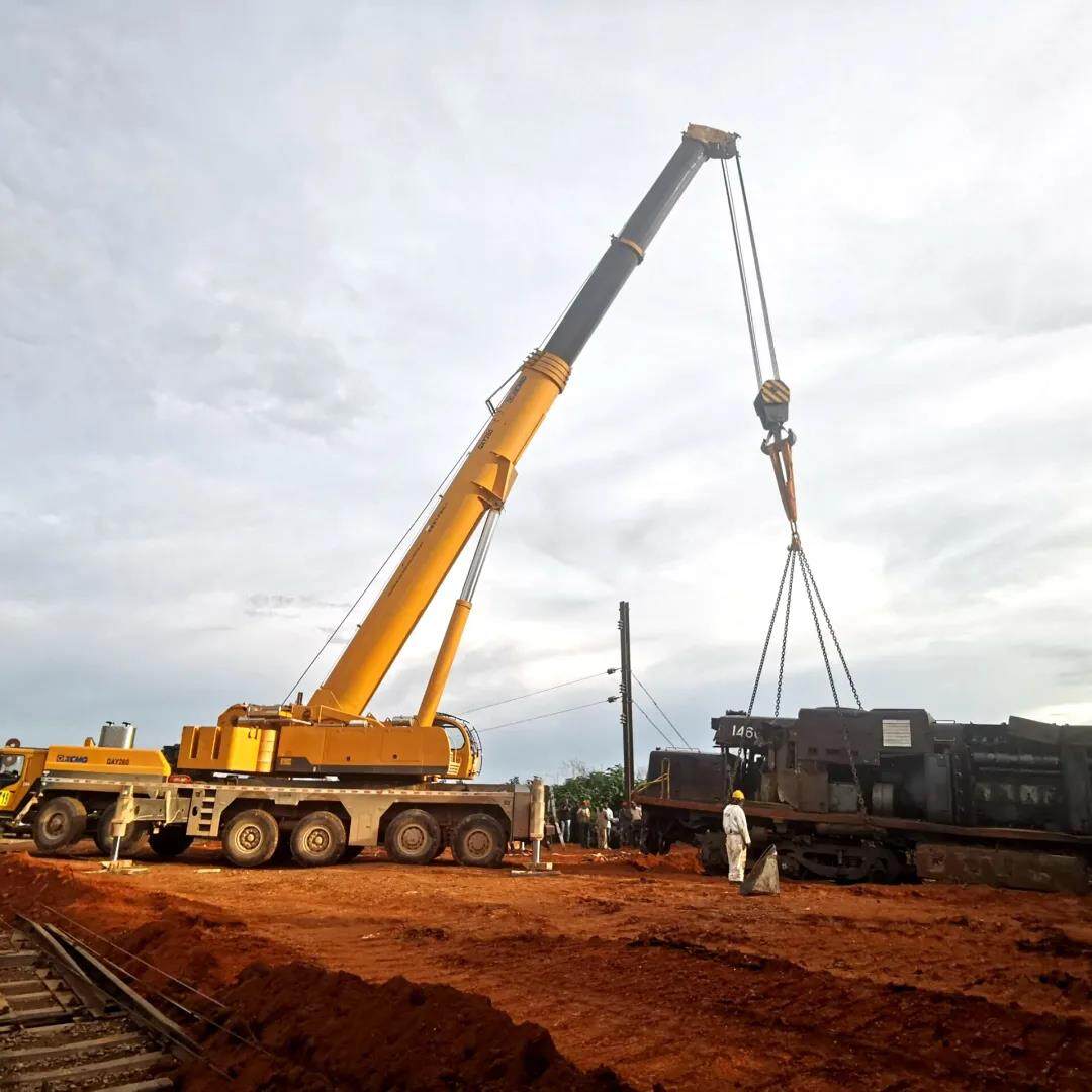 脱轨的火车头重约120吨,且附近道路均为较为松软的泥土地,这给施工救援带来了不小的难度。在现场徐工人与当地铁路部门人员的通力配合下,徐工QAY260起重机开始进场施工,经过数个小时争分夺秒的奋战,重约120吨的火车头被成功吊起安置。对于徐工的及时响应、高效救援,当地交通部门给予了高度赞赏。
