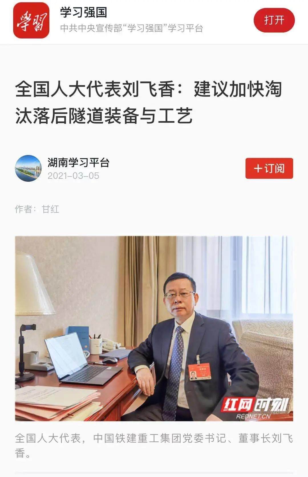 The New Year of the Ox is inseparable from the strong support of high-end technology and equipment. Following super hybrid rice, super computers, and super high-speed rail transit, super underground engineering equipment is becoming another new business card of Hunan's "super family". Behind the technological breakthroughs and profound changes leading this super underground engineering equipment, Liu Feixiang, deputy to the National People's Congress, party secretary and chairman of China Railway Construction Heavy Industry, must be mentioned. From the research and development of the "Jinghua" shield machine with the largest diameter made in China to the development of intelligent tunnel construction equipment for the plateau railway project, Liu Feixiang has always insisted on leading the team to push the industrial technology to a higher level and accelerate the innovation and transformation of the equipment manufacturing industry. As the person in charge of the company, he is determined to innovate, aiming at product upgrades, and focusing on the high-end market; as a representative of the National People's Congress, he performs his duties and cares about people's livelihood.