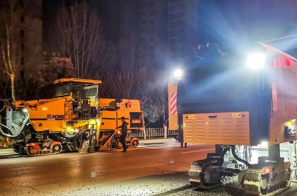 施工方选择在每天凌晨0点至早上6点施工,避免了交通拥堵。加上徐工铣刨机环保的除尘、洒水系统,能够实现绿色施工,大大减少铣刨灰尘对市民身体健康的影响。然而每天仅6个小时的施工时间,工期短,任务急,这就更考验铣刨产品的施工效率和可靠性。