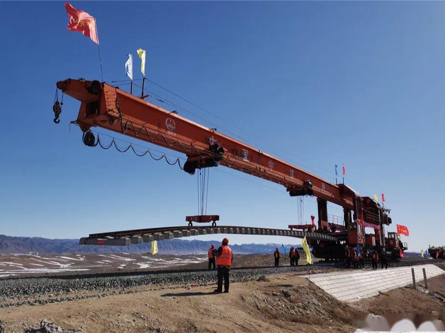 铁路部门推进铺轨主体工程同时采取多种举措,避免风沙掩埋路基和轨道。