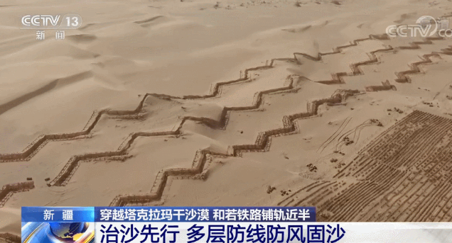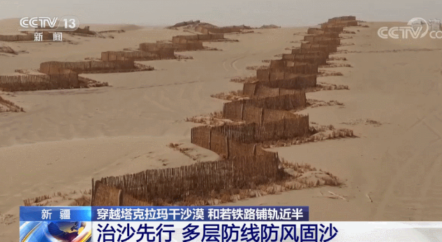 铁路部门采取“阻沙障+草方格”的方式,用芦苇、稻草等建立了高低结合的多层阻沙体系,每层阻沙障都留有适当空隙,防止由于过密形成“阻风墙”而难以抵挡强风。