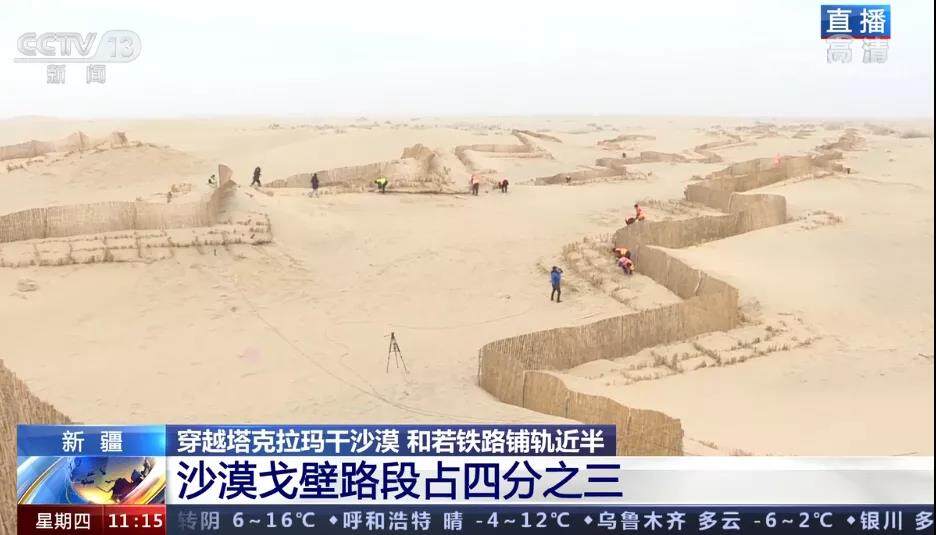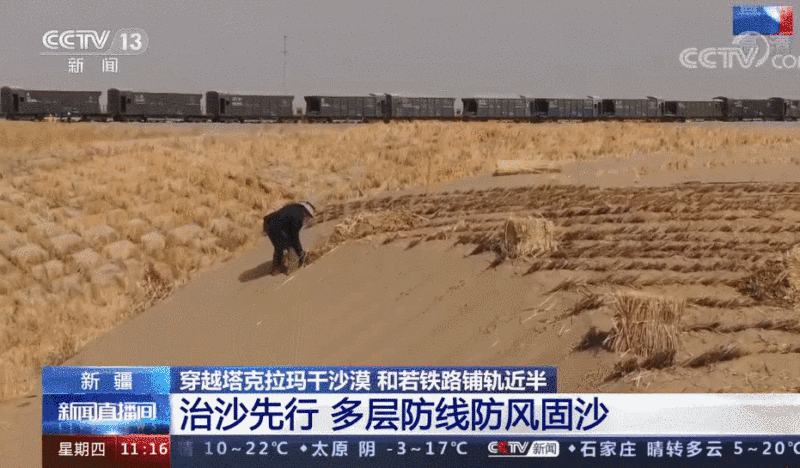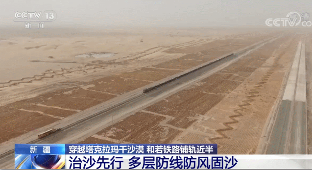 2021年3月12日植树节,有这样一项“大国工程”,与植树治沙紧密相关,在世界第二大流动沙漠——塔克拉玛干沙漠中,建设中的和若铁路,以每天2公里的铺轨速度推进。目前已完成铺轨任务的45%,与铺轨同步进行的还有一项重要任务。和若铁路是国家重点控制性工程,连接新疆南部和田地区与巴音郭楞蒙古自治州若羌县,线路全长825公里。其中约四分之三的路段穿越流动性沙漠,因此防风固沙成为建设工作的挑战。