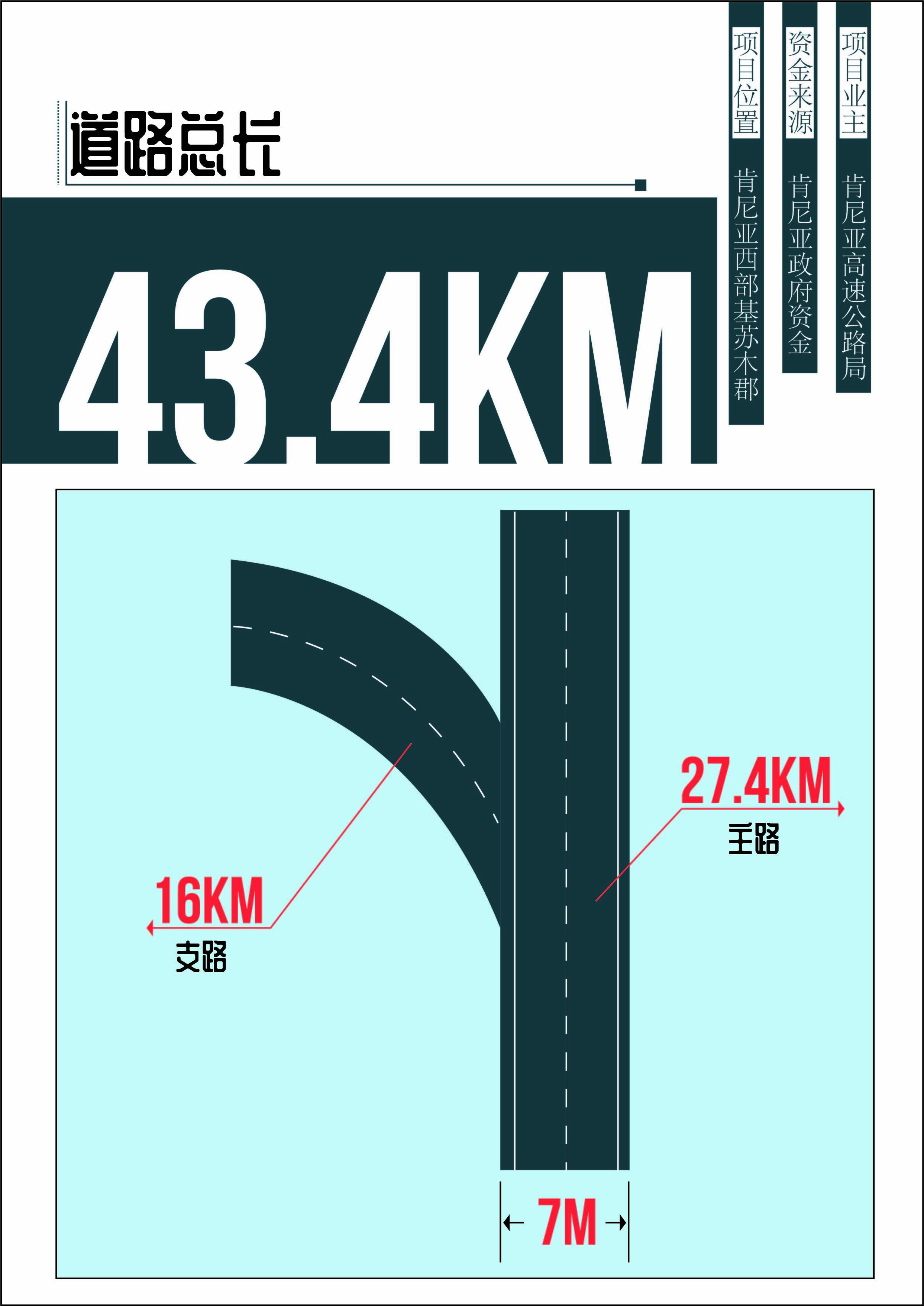 该项目位于肯尼亚西部基苏木郡,主要施工内容为将现有道路升级为沥青混凝土路面,以及排水等附属设施建设,道路总长43.4公里(包括27.4公里的主路和1条16公里支线),行车道宽7米,工期36个月。项目业主为肯尼亚高速公路局,资金来源为肯尼亚政府资金。项目建成后,将极大提升当地交通条件,助力该地区经济发展。