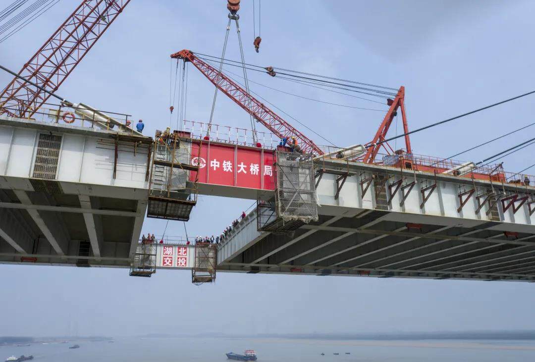 大桥桥面板为混凝土结构,为避免对桥面造成损坏,在钢梁吊装中,综合考虑航运、施工场地等因素,建设者只能采用小吨位吊机进行零散拼装,这对于主跨720米的大桥而言,不仅作业量大,工序繁琐,安装精度要求极高,稍有不慎就可能造成大桥扭转,且后期很难修复。中铁大桥局建设团队通过多次完善施工方案、严控施工荷载、细化施工工序以及创新采用多种纠偏技术等措施,最终保证了大桥钢梁的精准、顺利安装。