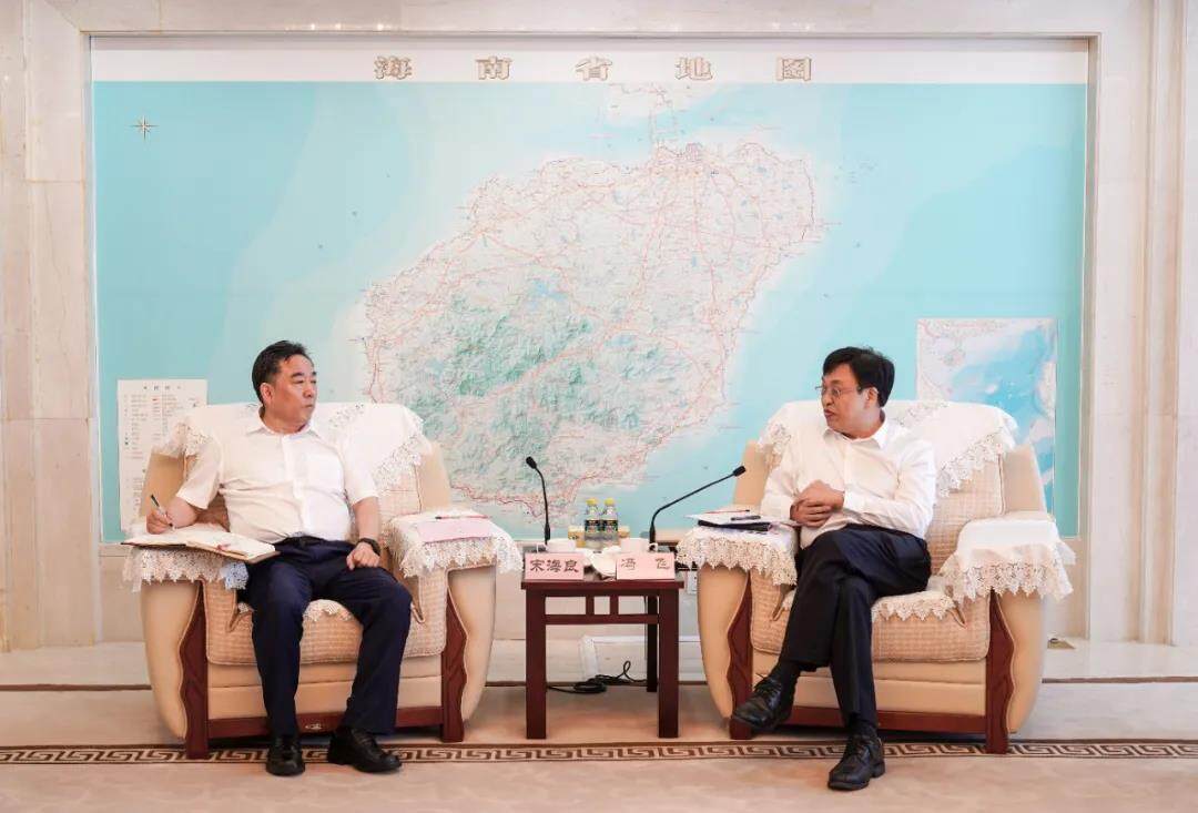 2021年3月16日,中国能建党委书记、董事长宋海良在海口拜会海南省委副书记、省长冯飞,双方就深化清洁能源、综合交通、生态环保、园区开发等领域战略合作深入交流并达成广泛共识。