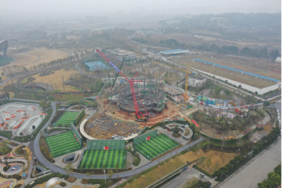 目前,主体建筑已经搭建完成正逐步进入穹顶钢结构安装阶段,预计在2021年5月完成演奏厅外装幕墙施工。随着项目施工节点的不断临近,场地内作业设备还在不断增加。除了SCC3200A-1,SCC550TB履带式起重机、SAC4500T全地面起重机也正陆续登场。