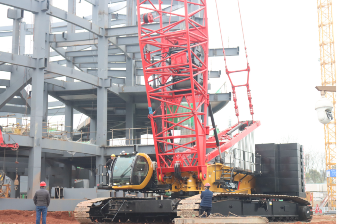 为保证施工进度,项目方选用SCC3200A-1履带式起重机作为项目主吊。操作手李阳说:“作业的场地比较狭窄而且跨度很大,钢结构有多个安装点位要同时安装焊接,难度非常大。”