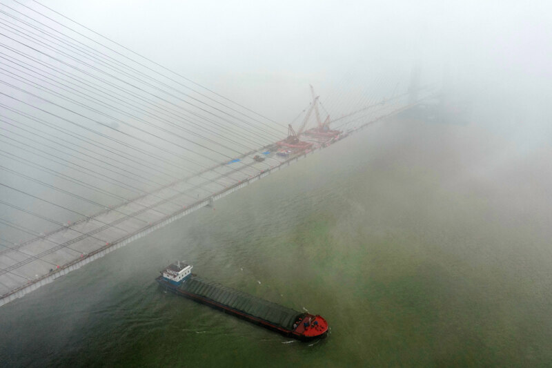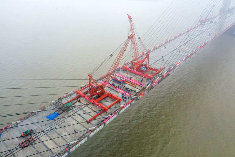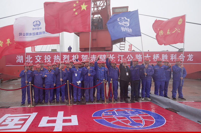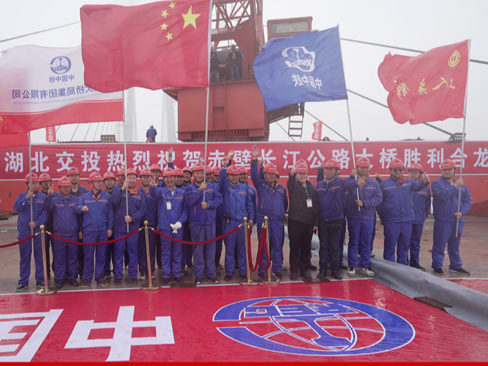 At 11:18 on March 16, with the last section of steel-concrete beam hoisted in place, the Hubei Chibi Yangtze River Highway Bridge, invested and constructed by Hubei Communications Investment Group, designed by China Railway Bridge Institute, and constructed by China Railway Bridge Bureau, was successfully closed. The Chibi Yangtze River Highway Bridge starts at Shuifu Village, Wulin Town, Honghu City, Hubei Province, and ends at Puan Village, Chibi Town, Chibi City. The main bridge is 1,380m in length. The entire line adopts two-way six-lane expressway standards, and the design speed is 100 kilometers per hour. The main tower of the bridge adopts "H" shape design, the north tower is 217.33 meters high, and the south tower is 223 meters high.
