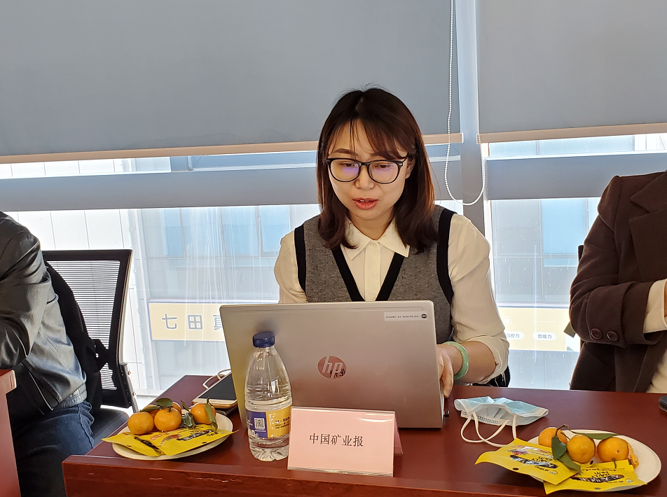 Liu Xuan, reporter of China Mining News, speaks at the exchange session